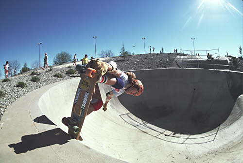 Bryan Buck Name? Bryan Buck Born? March 2, 1960 in San Francisco Famous for? Vert! Tunnel memories? I remember driving home with Rick Blackhart late one night. The hood latch was loose. It was really foggy. Suddenly, the hood flies up and into the windshield. Rick doesn’t even blink, doesn’t even slow down. Just sticks his head out the window and keeps driving. Scared the shit out of me! Favorite skate spots? The Los Altos Pool, the Garlic Bowl, Bombora, the pipes at San Onofre – they were the best I’ve ever ridden! Gettin’ air? My brother and I had friends who were pilots. We flew around the South Bay taking aerial photos looking for empty pools. We found quite a few that we’d sneak into. Only got busted once or twice. Other teams? The other guys – Team Santa Cruz. How I currently make a buck? I’m a mechanical design engineer in Silicon Valley. I also have a passion – cycling and mountain biking. I started my own company making high-strength titanium brake calipers for bicycles. Family? I’ve been with my wife for 20 years, married for 16, 2 kids, dogs, cats and even pet rats. Rats are very clean and have a great personality.