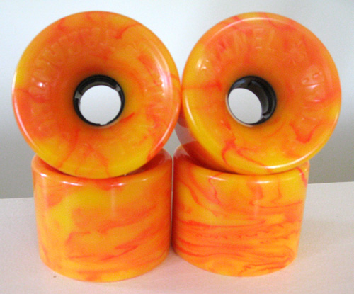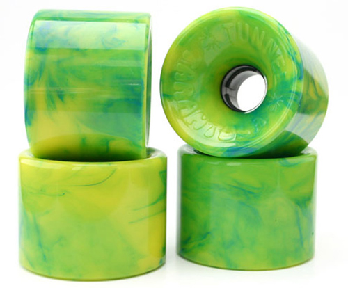 The 78A Yellow/Orange STR Tunnel Rocks are firm and fast. Plenty of grip and plenty fast. The 76A Green/Yellow STR Tunnel Rocks are not only fast and grippy wheels, they look great too! |